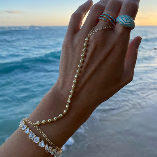 Our first ever hand chain that features both bezeled gemstones and dangling ones! Made from a delicate 14K gold-filled chain, our Natallia Hand Chain is embellished with unique white teardrop cz’s. Handcrafted, made with love, and your new favorite piece of jewelry.