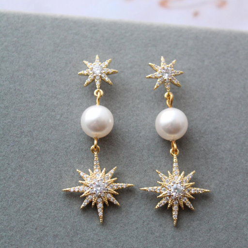 Celestial Star Earring and necklace set Bridal Statement Earrings Pearl Earrings Wedding Earrings Star Earrings Celestial jewelry set