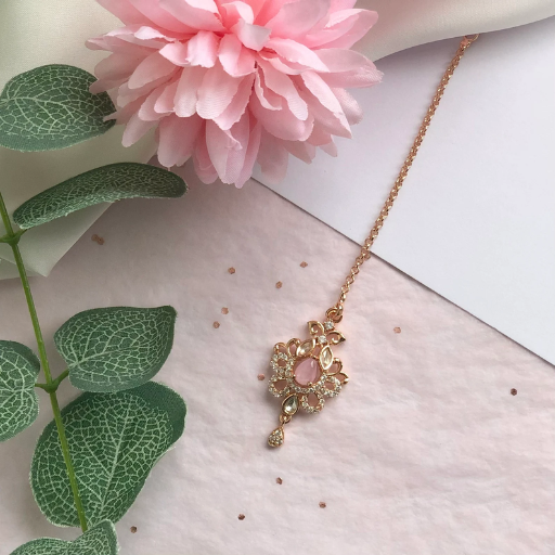 American Diamond Pink Rose Gold Maang Tikka