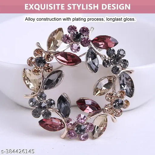 STYLISH DESIGN : Beautiful and stylish crystal brooch pin for women, elegant and unique style. Alloy construction with plating process, longlast gloss. Sparkling branches perfectly hold 6 beautiful rhinestone flowers. This brooch will make your dressing be more exquisite and elegant!